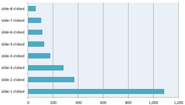 Here, the interaction on subsequent slides was higher than in the previous studies. So, for providing additional information in a particular context, slideshows do seem to have their use. However, they seem less suitable as a site navigation tool.