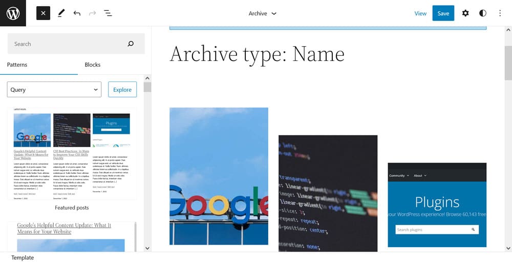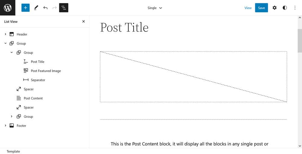Here’s what the page template looks like in the Site Editor: