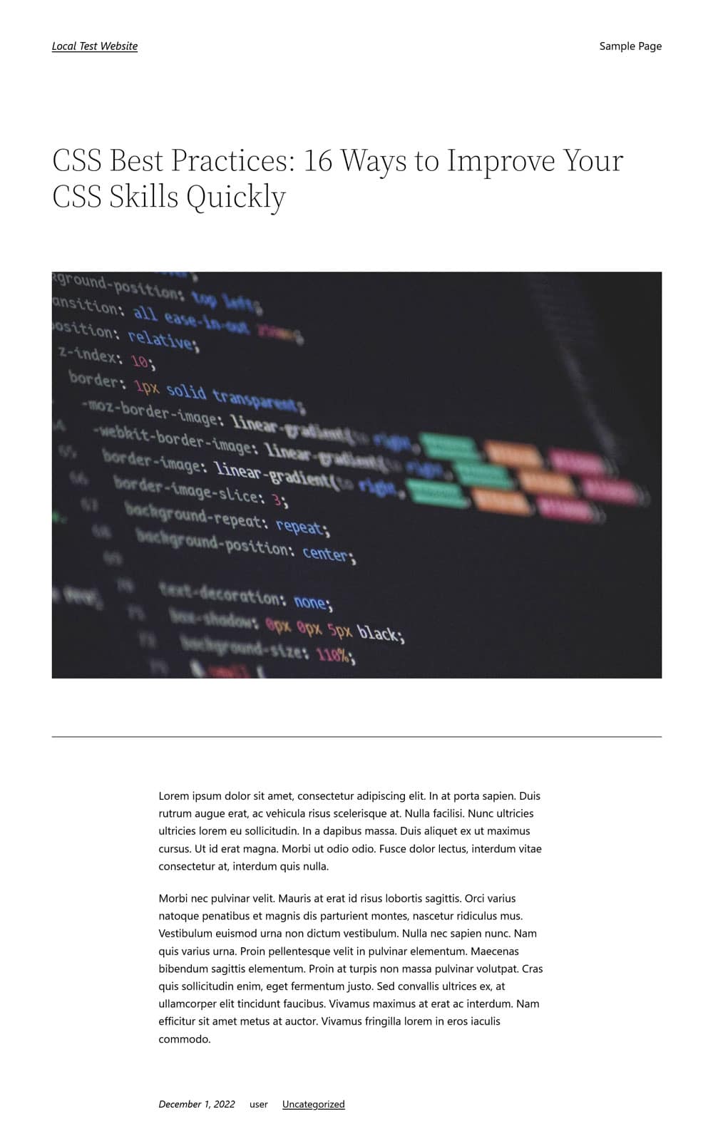 You can assign those to posts and pages or, alternatively, set them up so that they automatically apply to certain kinds of content. Of course, you can also edit existing templates to change their design. For example, this is what single posts usually look like in the Twenty Twenty-Two Theme: