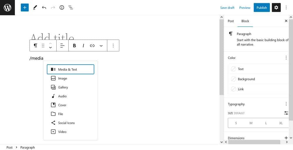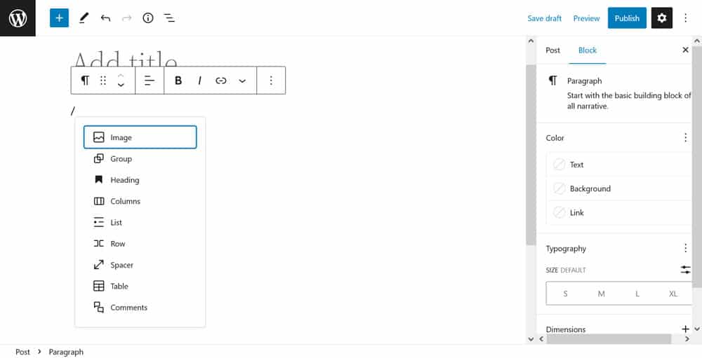 Before moving on to the finest layout elements included in Gutenberg, let’s go over a quick refresher for how to add blocks to the editor. Basically there are three different possibilities: