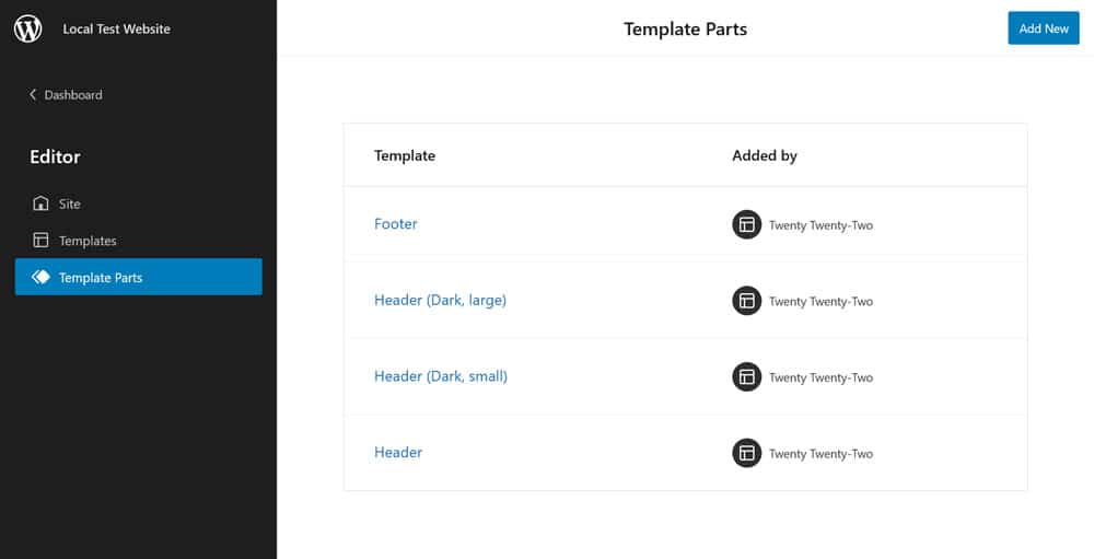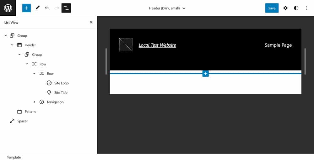 As you can see in the markup above, this header is a Row block that contains another Row element for the site logo and title as well as a navigation block. It’s simple but sufficient.