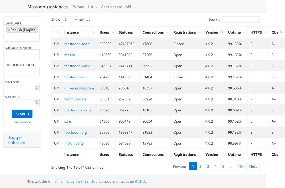 Alright, so your first step is to look for a server you want to join. You can find a list of available instances here. The page will also ask you for some initial information (language preference, whether you’d like a big or small instance, moderation rules) in order to give you relevant recommendations.