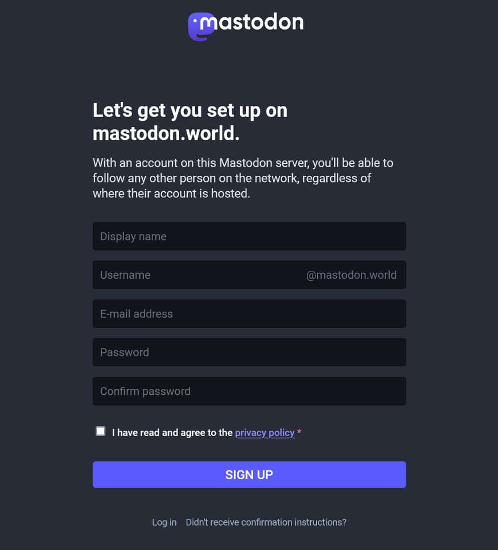 Once you have figured out which instance you would like to become a part of and that it is currently accepting members, it’s time to hit the Create account button.