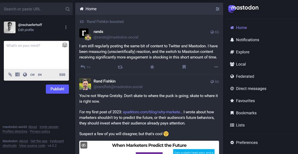 Twitter alternatives are clearly having a moment. The mismanagement over at the original platform leads to lots of users looking for a new home and Mastodon is one that can quickly feel familiar. It’s free, open source, and quite easy to use. While some things, like its decenetralized nature, take some getting used to, the overall functionality is very similar to what you are used to from Twitter.