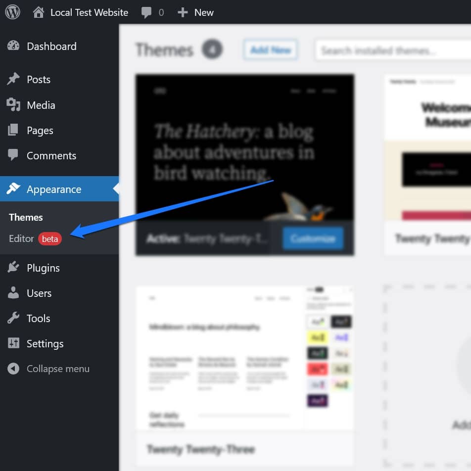 If you want to link to your policy in your comments section or if it is short enough to post it there, that’s pretty easy to do if you are using a block theme like Twenty Twenty-Two. In that case, first access the Site Editor under Appearance > Editor.