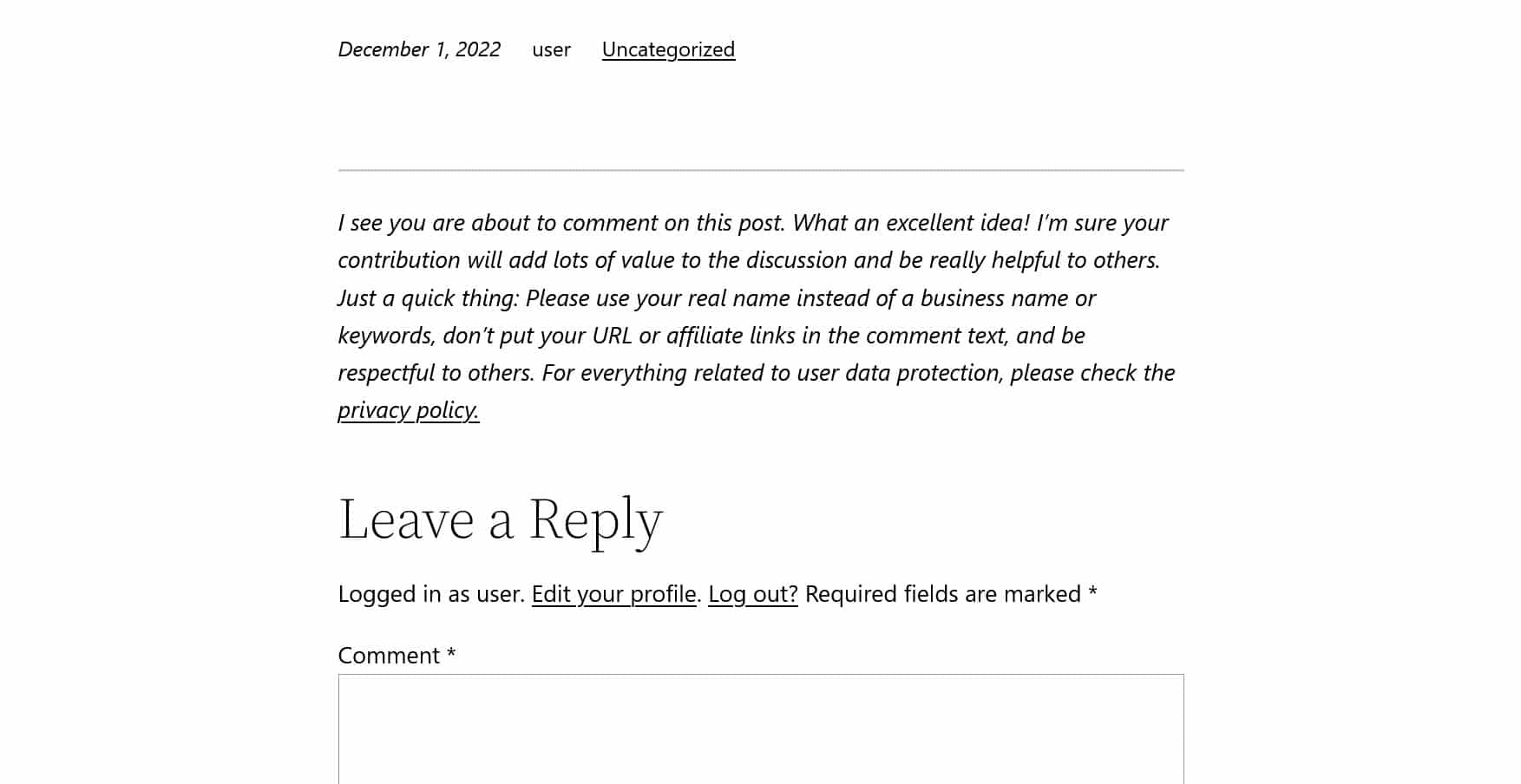 With the above out of the way, the question that remains is where and how to make your comments policy visible on your WordPress site. For that, you have several options.