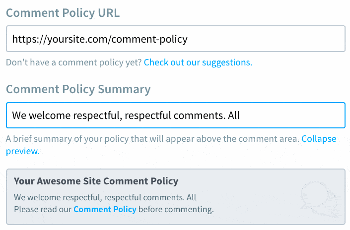 - Frequently asked questions — It often helps to proactively include answers to questions that come up a lot. For example, why a comment might not be published, how to contact a moderator, etc.