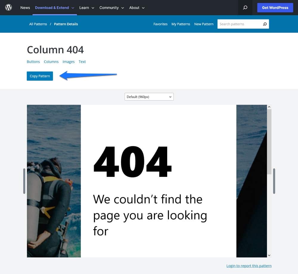 Once you have found something, click on it to get to the pattern page. Here, simply click the Copy Pattern button at the top.