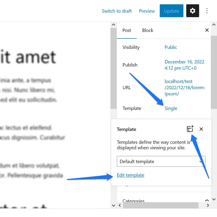 You might not be aware of it but when editing posts and pages, it’s possible to edit their individual templates or even build custom templates without the need to go back to the main Site Editor.