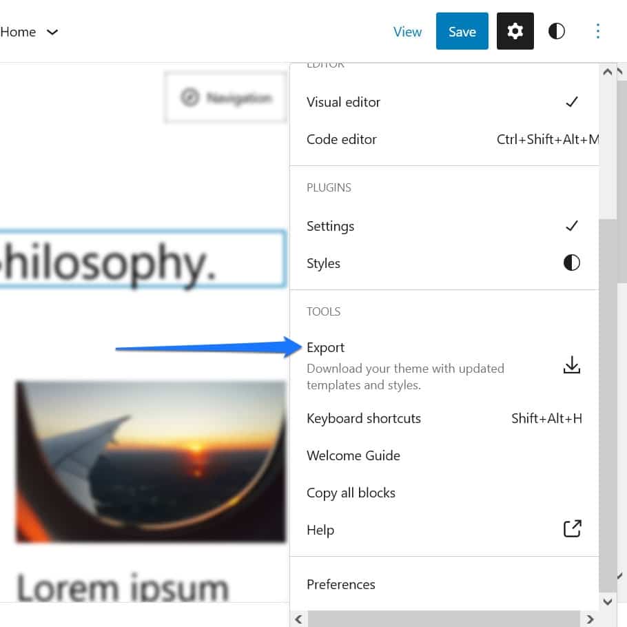 The final somewhat hidden because unassuming Site Editor feature is the Export function. You find it in the Options menu.