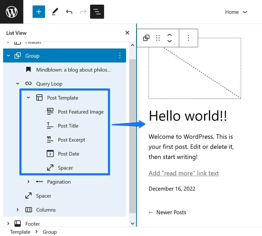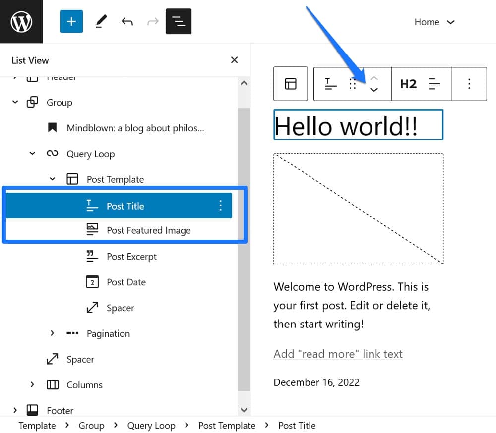 This is one of those WordPress Site Editor features that’ really small but is still worth mentioning because a) it makes a big difference in the display of your posts on the page and b) it is easy to overlook.