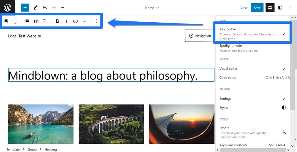 9. Move the Block Toolbar to the Top