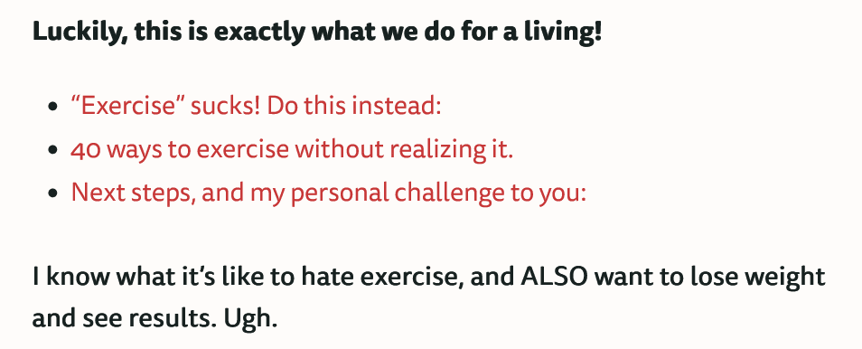 Next is one of my favorite fitness websites. They also do a good job making their links stand out by coloring them in the brand’s red.