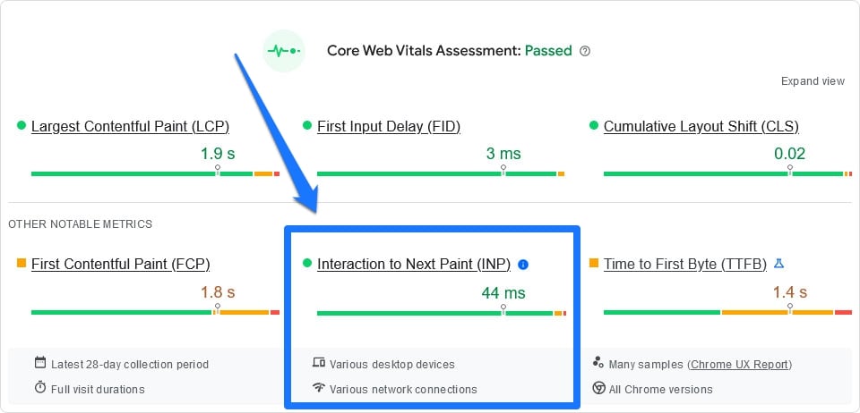 Measuring Interaction to Next Paint (INP) is key for understanding and improving the interactivity and responsiveness of your WordPress site. Thankfully, there are several tools available that can help you figure out how your website performs here: