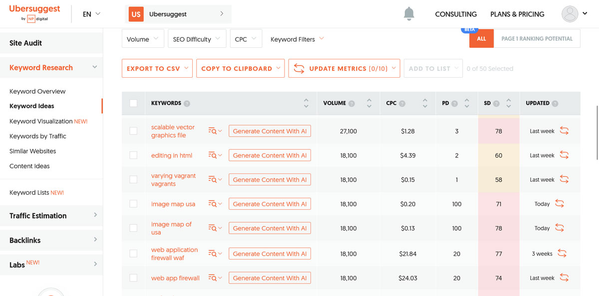 Using Ubersuggest