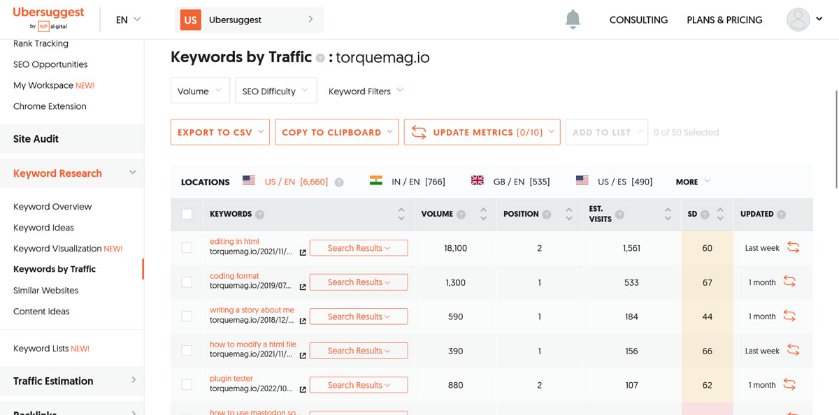 Ubersuggest’s Competitive Analysis tool allows you to enter a competitor’s domain to discover long-tail keywords they are ranking for. This can be fantastic for identifying potential keyword opportunities that you might be missing out on.