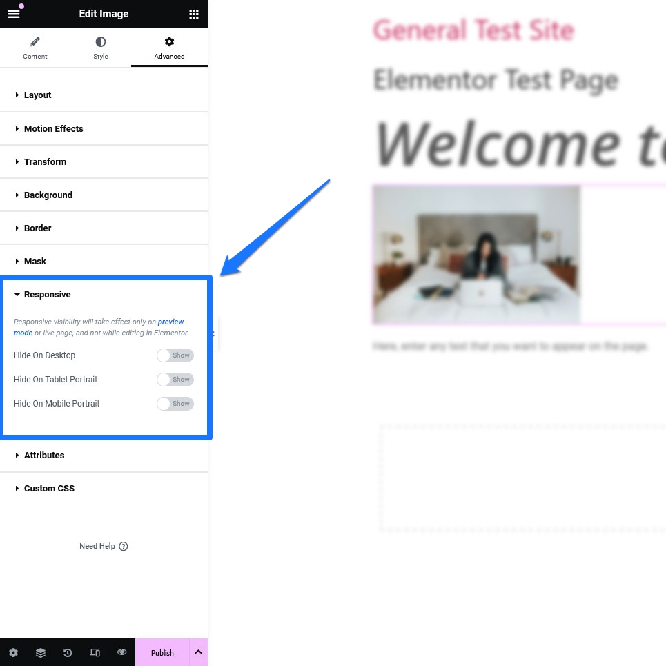 In addition, there is the Advanced tab. Here, you can make changes to margins and padding, border, background, and more. You can even hide elements on certain types of devices.