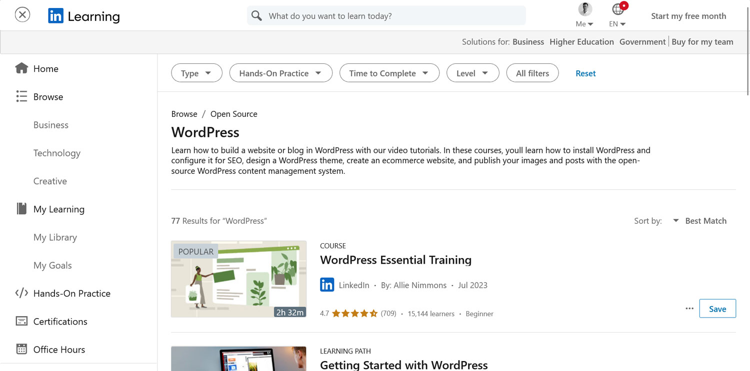 Just like Udemy, you may be able to access LinkedIn Learning for free or with a library card. Otherwise, you can pay for a monthly plan or buy courses individually.