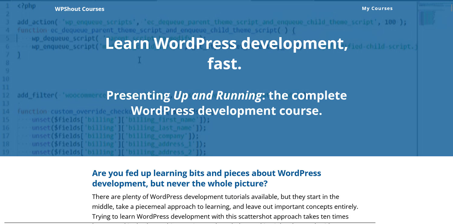 Tired of WordPress development courses that only feed you bits and pieces, never the whole picture? Then you’ll love Up and Running. This course will teach you all the skills you’ll need to become a seasoned WordPress developer, leaving little to nothing out.