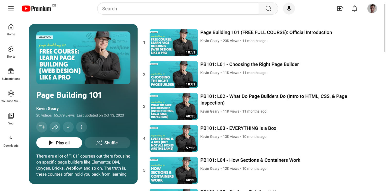 If there’s one YouTube course that’s free and high-quality, it’s Page Building 101. Rather than teaching you to use Elementor, Divi, or any other specific page builder, this course educates you on the fundamentals of page building and web design.