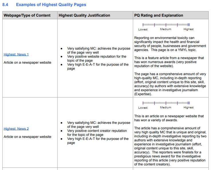 Websites that satisfy Google’s requirements will be granted “High” page quality.